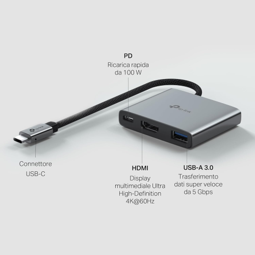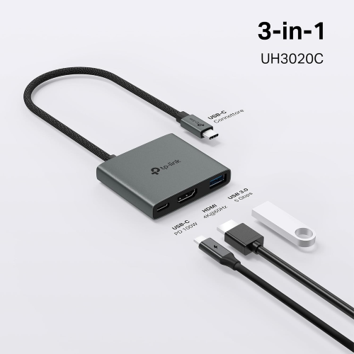 TP-Link UH3020C Hub USB-C 3 in 1, 1x HDMI 4K@60Hz, 1 USB-C PD Fast 100 W, 1x USB-A 3.0 SuperSpeed a 5 Gb
