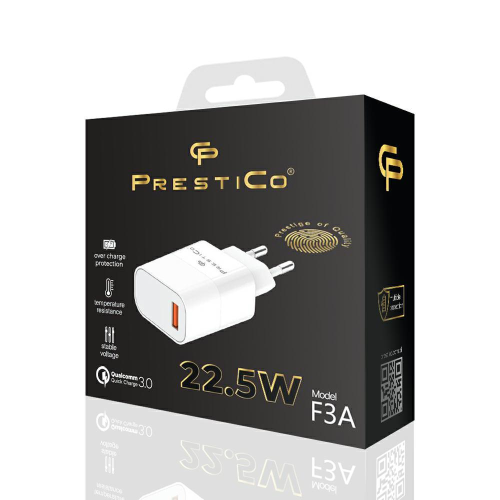 Caricabatterie Caricatore Rapido PRESTICO F3A 1xUSB 22,5W QC 3.0 BiancoCaricabatterie Caricatore Rapido PRESTICO F3A 1xUSB 22,5W QC 3.0 BiancoCaricabatterie Caricatore Rapido PRESTICO F3A 1xUSB 22,5W QC 3.0 Bianco
