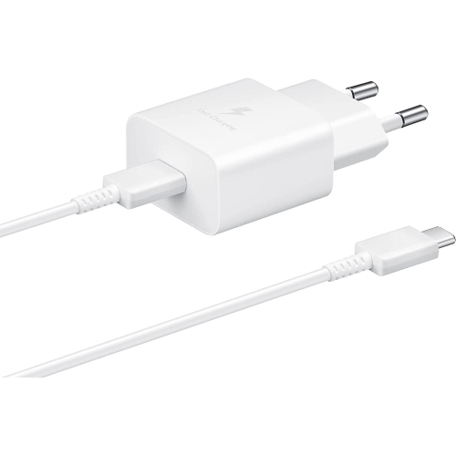 CARICABATTERIE DA RETE 15W USB TYPE-C CON CAVO USB TYPE-C 1M INCLUSO ORIGINALE SAMSUNG EP-T1510XWEGEU BIANCO