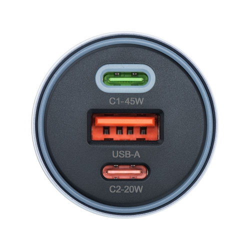 Caricabatterie per auto Alu 2 x Tipo C + USB A PD QC4.0 SFC2.0 4,5A 65W grigio
