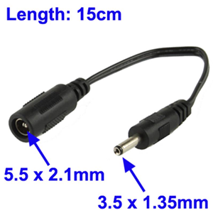 Connettore Caricabatterie Universale 5.5 x 2.1mm DC Femmina to 3.5 x 1.35mm DC Maschio 15cm